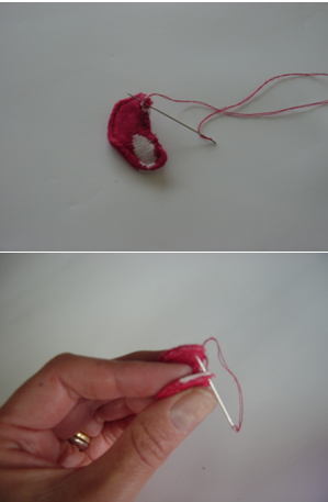 Red embroidery thread or wool to embroider mouth
