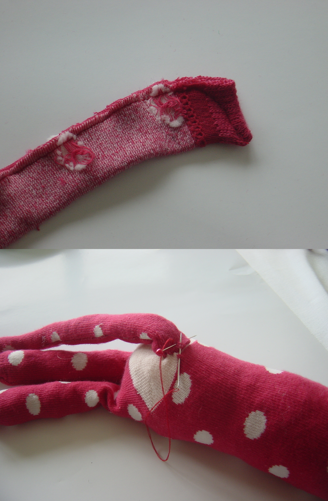 sock. Tuck in each corner and pin just below the ears. Lightly stuff and then